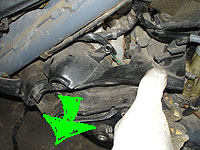 | クリップが外れたら、外側に引っ張る。この時、エンジン側のダクトにバッチリ引っ付いているので、ラスペネでも注入して、気をつけて外そう。 | この部分。あんまり無理矢理引っ張ると、エンジン側から取れてしまう。ゴムが劣化しているので、エンジン側で取れると厄介だぞ〜 | と、まー こんな状態になれば、作業がしやすいですな。 | ||
