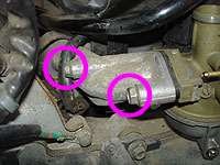 | さあキャブを分解しよう。フロートチャンバー部の2本のねじを取る。 【ねじ】 |