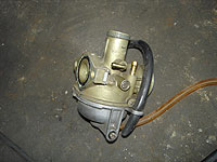 | フロートチャンバー部も重要だ。この赤丸の部分が、スタータジェットと言って、始動性が左右するパート。 | このよーに導通していないとイケない。 | 全てを分解し、確認しよう。 | ||