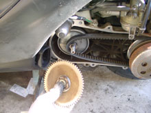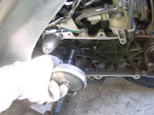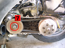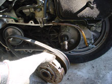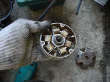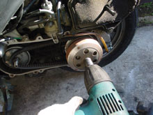 | クラッチフェイスを取る。 | クラッチ側のナットを緩める。これも機械工具を使う。 | ドライブフェイスを取る。 | ||