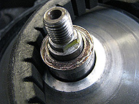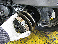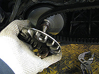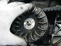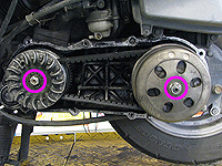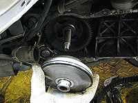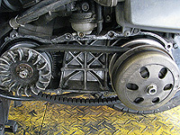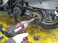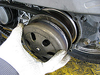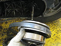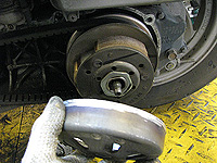 | プーリーを外す。 | リード系の場合は、前方にこのようなカバーが付いている。 | これは、ただはまってるだけ。だが、あまりにもガタ付いている場合は、交換してほしい。 | ||